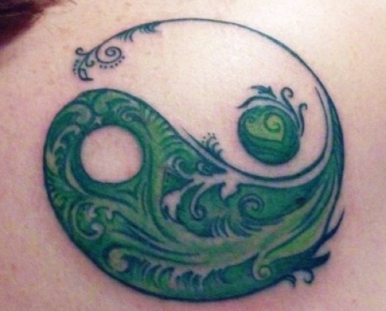 Here is my first tattoo, a take on the yin-yang symbol. It is in the center of my back/between my shoulder blades. It is a reminder of my own struggle to strive for some semblance of balance in this world, and a reminder that I can put all the broken bits and pieces of myself together and be whole. This was a gift to myself on my 45th birthday